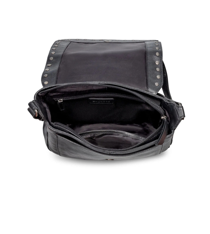 De Vardo is een stoere en stijlvolle crossbody tas met een flap en subtiele studs op de voorkomen als detail. Het compacte formaat maakt deze tas ideaal voor dagelijks gebruik of een avondje uit. Dankzij de verstelbare schouderband draag je de tas comfortabel op jouw manier.
