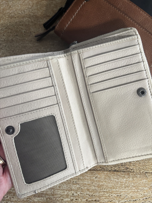 Binnenin vind je meerdere vakken voor pasjes, een transparant vak voor je ID of rijbewijs en een handig ritsvak voor muntgeld. Aan de achterzijde zit bovendien een extra ritsvakje voor kleine items.
