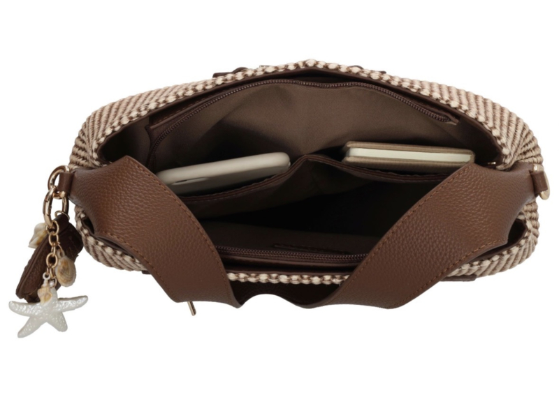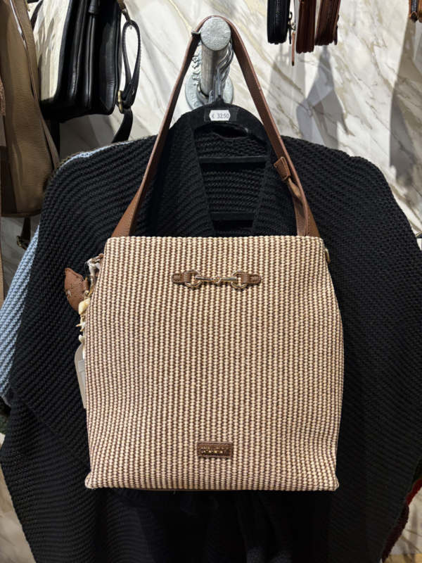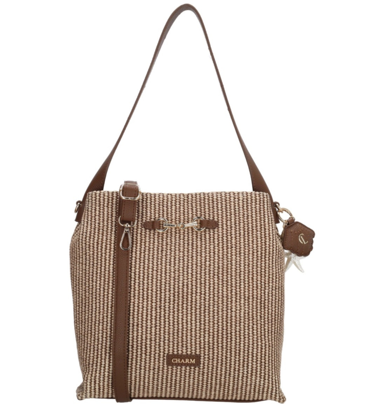 Charm London. Tas bruin-ecru gevlochten.